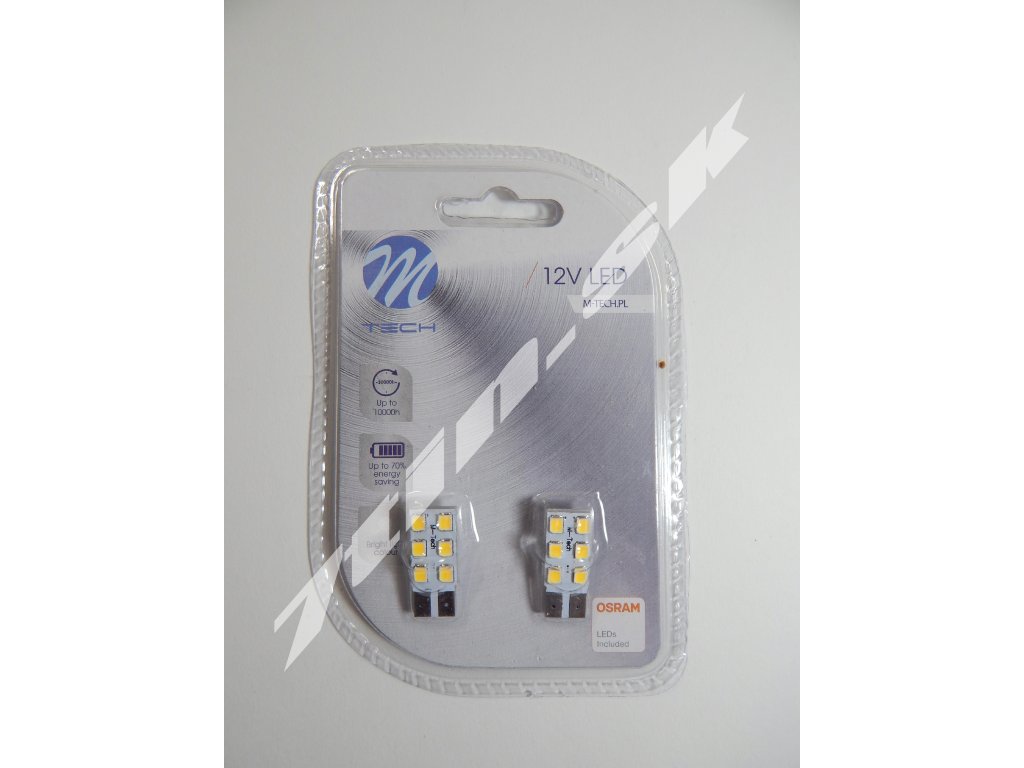 2 kusy LED žiaroviek značky M-Tech vhodných najmä pre vnútorné použitie vo vozidle.